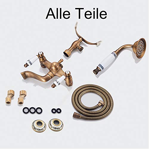 Rozin - Rubinetto da parete per vasca da bagno con doccetta e due manopole, in ottone, vintage, in ceramica