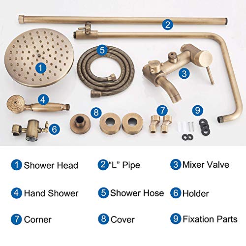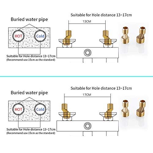 Adattatore doccia: doppia maniglia a croce per controllare acqua calda e fredda. Spedito con adattatore regolabile per regolare la distanza tra 13 cm e 17 cm.