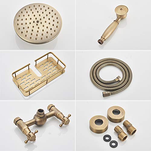Rozin, Soffione doccia in ottone anticato con doccetta a pioggia