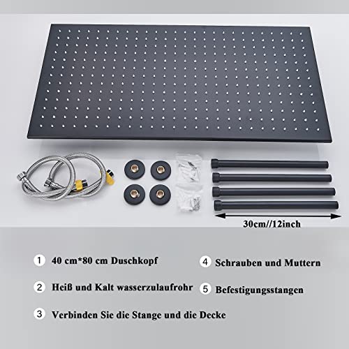80 cm x 40 cm possono essere coperti da tutto il corpo, il che è molto pratico. Questo soffione doccia con una dimensione di 16 x 32 pollici e molti ugelli offre sicuramente la migliore esperienza di doccia di tutti i tempi.