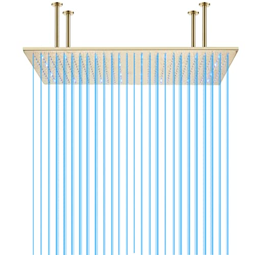 Rozin Soffione doccia a pioggia a LED oro spazzolato, soffione a pioggia, regolazione della temperatura, 3 varianti di colore 80 cm x 40 cm, in ottone