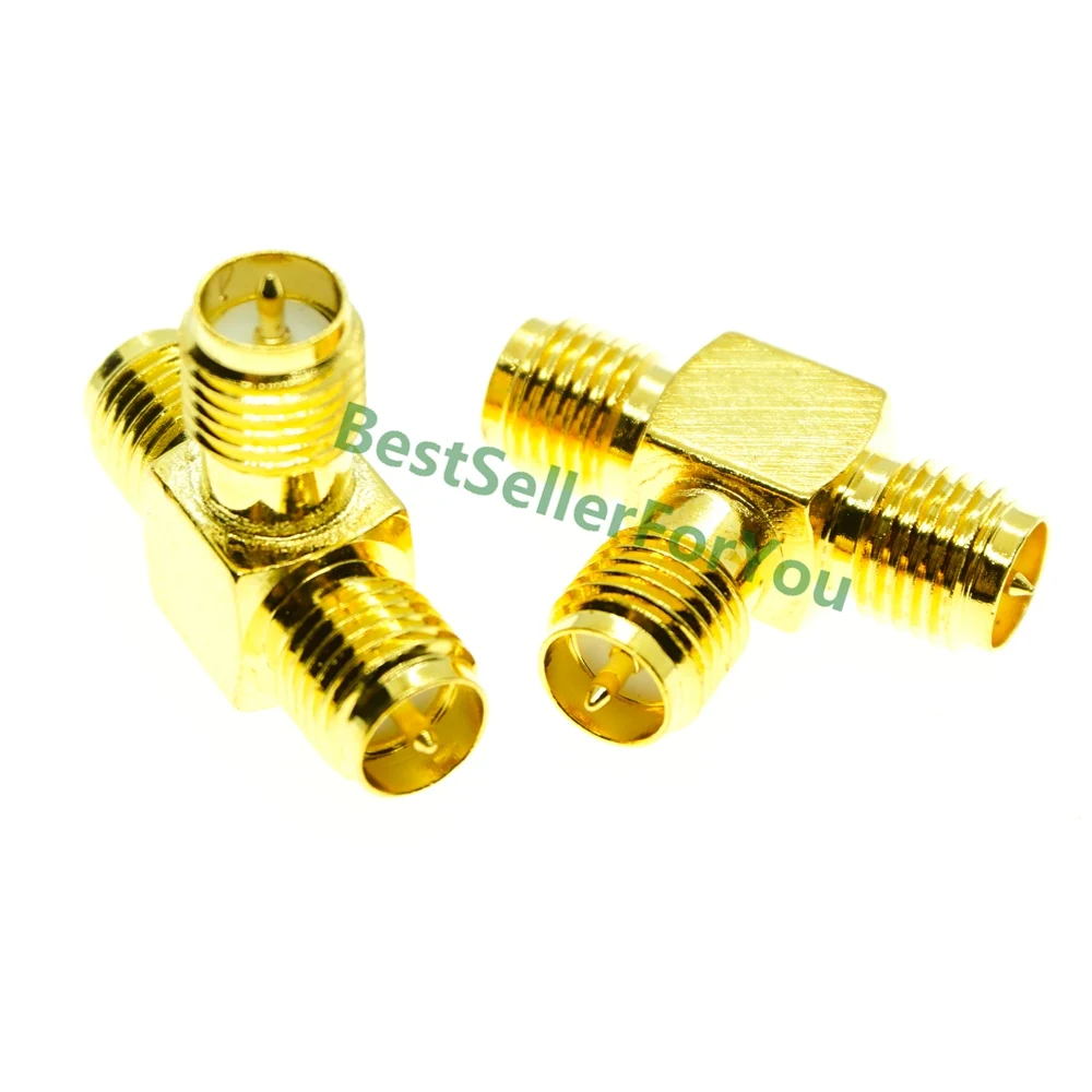 RP-SMA female to 2x TWO double RP SMA jack triple T in series RF adapter connector 3 way