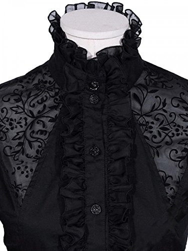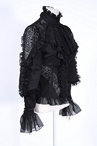 RQ-BL Schwarze viktorianische Donna Camicetta A Maniche Lunghe con Jabot e Oranger Spilla (21099)