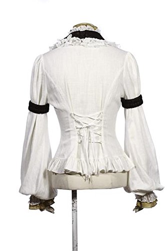 RQ-BL Victorian Camicetta a Maniche Lunghe di con Un Colletto e aermelraffern in Finta Pelle (SP152) Beige 42
