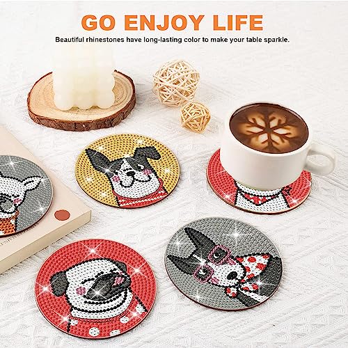RQPYQF Sottobicchieri Diamantati con Supporto, 8 Pezzi Cani Diamond Painting Sottobicchiere, 5D Fai Da Te Diamante Arte Pittura Sottobicchieri da Tavolo per Artigianato