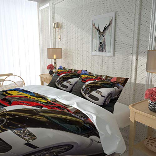RQXRTR 3 Pezzi Set di Biancheria da Letto Copripiumino Una Piazza E Mezza Bambini 200X200cm con 2 Federe 50X80cm Copripiumini 1 Piazza E Mezzo in Poliestere Microfibre Stampa 3D Modello Supercar