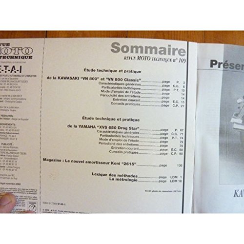 RRMT0109.1 REVUE TECHNIQUE MOTO - KAWASAKI VN800 de 1987 à 1989 - YAMAHA XVS 650 DRAG STAR de 1986 à 1990