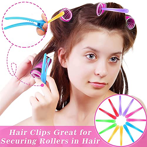 Set di Rrulli per Capelli da 24 Pezzi 12 Rulli per Capelli Grandi Rulli per Capelli Autoadesivi 48 mm e 12 Pezzi Clip da Taglio a Becco d'anatra per Parrucchiere Llungo Medio Corto