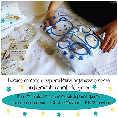 RS-Italy Bustine Corredino 6 Bustine per il Corredino del Neonato - Sacchetti Cambio Neonato Ospedale 6pz Trasparenti Chiusura Cursore Ermetico, Porta Corredino, Idea Regalo (Blu)