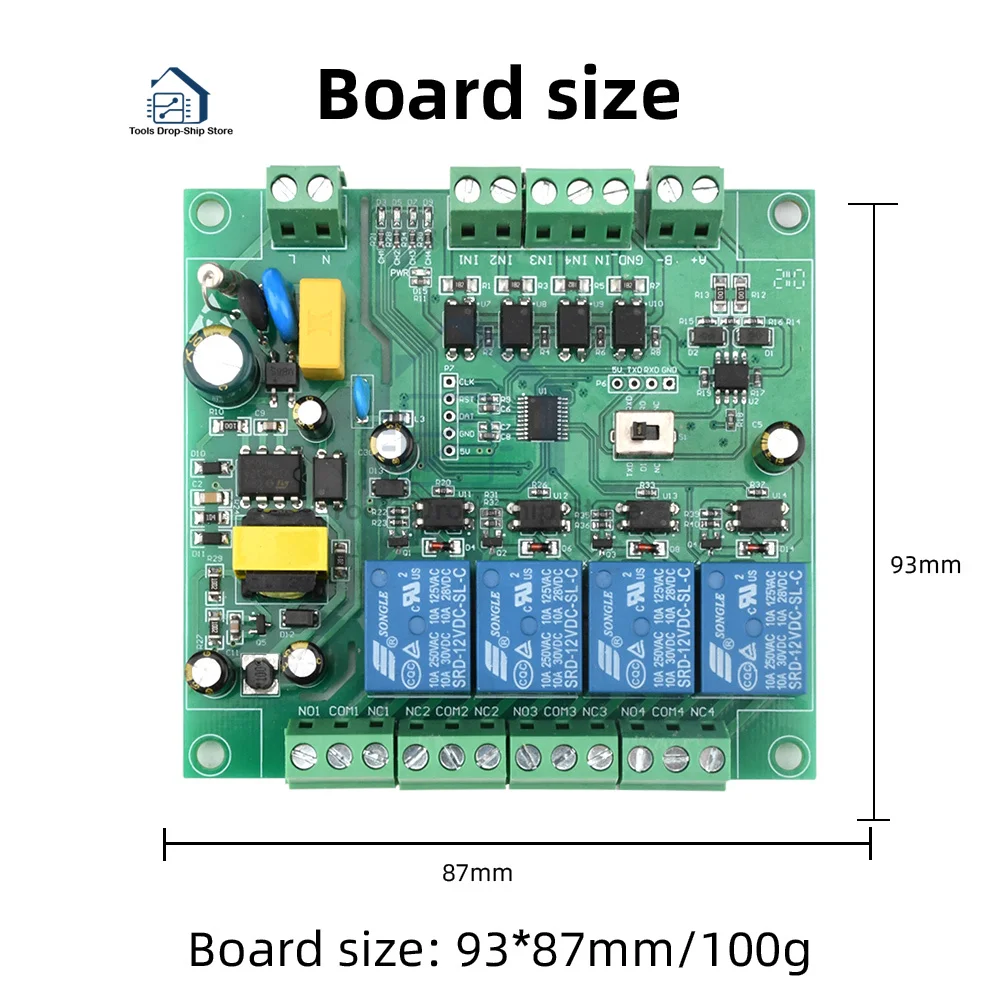 RS485/TTL UART 220V 4 Channel Power Supply Modbus Relay Module RTU Four-Way Input Output support standard Modbus RTU protocol