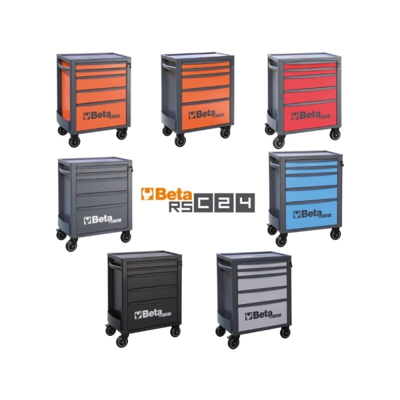 La cassettiera a 5 cassetti Beta RSC24/5, realizzata con robusta struttura in materiali di alta qualità, è l'evoluzione della storica C24S progettata per soddisfare le esigenze dei professionisti e non.Disegnata con linee inspirate al mondo racing, offre uno stile accattivante oltre che inconfondibile.La nuova cassettiera Beta è selezionabile in 7 diverse colorazioni così poter identificare il modello più adatto ai propri spazi.Questo modello è realizzato con 5 cassetti da 588x367 mm e altezza da 70 mm (2x), 140 mm (2x) e 280 mm (1x) che grazie alle guide telescopiche offrono estrazione totale.Predisposta con robusto piano rinforzato in ABS, il piano di appoggio è disegnato con bordi anticaduta e 8 pratici fori per l'alloggiamento dei cacciaviti.Grazie alle 4 ruote da 125 mm, due fisse e due girevoli, di cui una con freno, potrete movimentare con estrema semplicità per spostarla all'occorrenza senza fatica.Grazie all'indispensabile serratura di sicurezza centralizzata potrete riporre