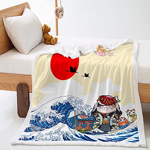 RSFGOTP Flanella Coperta Stile Giapponese 3D Stampa Coperta in Pile Sherpa Plaid Super Morbida Calda Microfibra Coperta copriletto per Tutte Le Stagioni 130x150cm