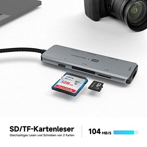 RSHTECH Hub USB C 7 in 1 con 8 K HDMI Alluminio USB C Docking Station, porte dati USB-C da 10Gbps e 2 porte dati USB-A, lettore schede PD e SD/TF da 100W hub USB C 3.2 Gen2, RSH-T02