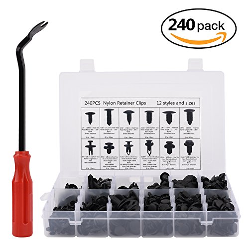Il pacchetto include: 240 pezzi automotive bottoni in plastica kit (12 misure diverse) e 1 pezzi di fissaggio strumento di rimozione.