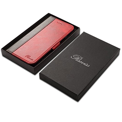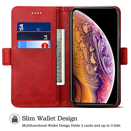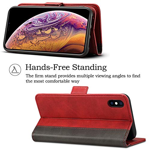 Rssviss Cover per iPhone X - Custodia in Pelle Flip Caso per iPhone X [4 Slot per Carte e Soldi] con [Chiusura Magnetica] Custodia iPhone X Supporto Stand 5.8" Rosso