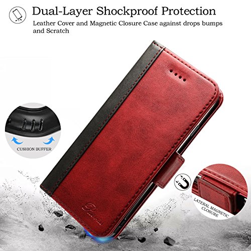 Rssviss Cover per iPhone XR, custodia in pelle PU per iPhone XR con scomparti per carte di protezione iPhone XR con chiusura magnetica, custodia da 6,1 pollici, colore: Rosso