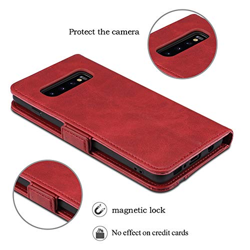 Rssviss Cover per Samsung Galaxy S10+, custodia in pelle per Samsung S10 Plus a patta con 4 scomparti porta carte e moneta con chiusura magnetica, custodia per Galaxy S10+ custodia da 6,4 pollici,