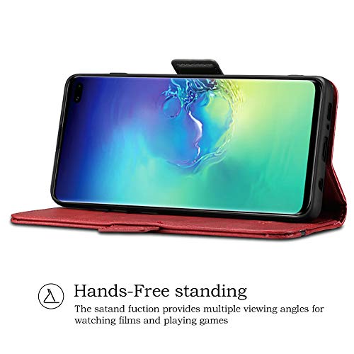 Qualità unica - La custodia per Samsung S10+ pelle PU ha un design di prima classe e una pelle sintetica di alta qualità, è stabile e durevole per proteggere il tuo smartphone ma morbida al tatto. In generale, è davvero indistruttibile.