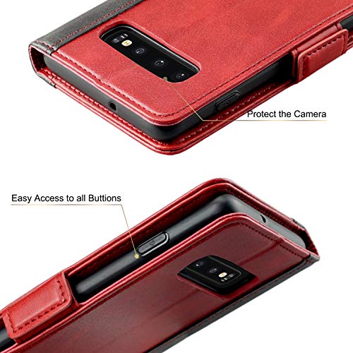 Rssviss Cover per Samsung Galaxy S10 Plus, custodia in pelle PU per Galaxy S10+ con scomparti per carte di protezione Samsung S10 Plus con fibbia magnetica, custodia da 6,4 pollici, colore: Rosso