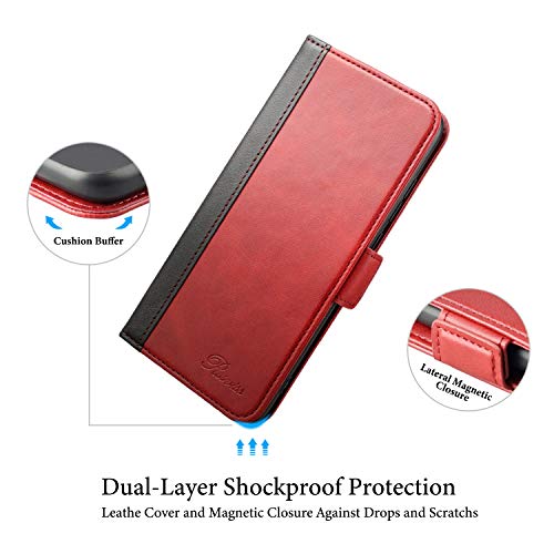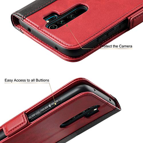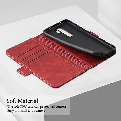 Rssviss Cover per Xiaomi Redmi Note 8 Pro, Custodia in pelle PU di Redmi Note 8 Pro con scomparti per carte di protezione Xiaomi Redmi Note 8 Pro Fibbia Magnetica Pochette 6,53 Pollici Rosso