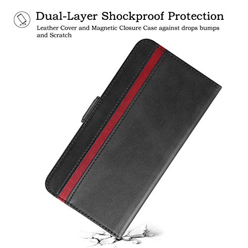 Rssviss Custodia per Huawei P30, custodia in pelle PU per P30, portafoglio con patta, 4 scomparti per carte e monete con chiusura magnetica, custodia per Huawei P30, porta carte da 6,1", colore: Nero