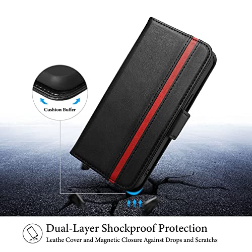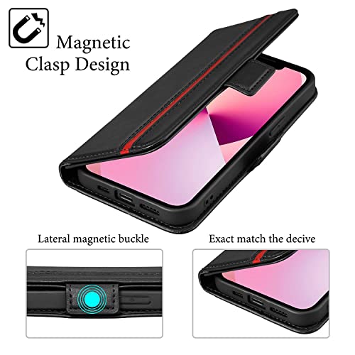 Rssviss Custodia in Pelle PU per iPhone 13 Cover, 4 Slot per Carte e Soldi con Chiusura Magnetica e Funzione di Supporto per Supporto iPhone 13 Cover 6,1 Pollici Nero