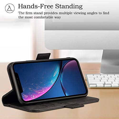 Rssviss EU-W3A03-iXR Cover per iPhone XR, Custodia in pelle PU per iPhone XR con scomparti per carte di protezione iPhone XR con chiusura magnetica tasca da 6,1 pollici, nero