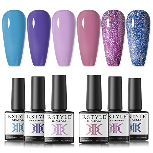 RSTYLE Semipermanente Unghie, 6 Colori Blu Viola Pervinca Smalti Semipermanenti Per Unghie Smalto Unghie Nail Polish Soak Off Smalto Gel Unghie UV LED Manucure Kit