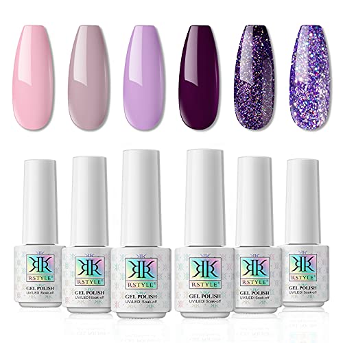 RSTYLE Smalto Semipermanente, Smalti Semipermanenti per Unghie da UV LED Gel Nail Polish Professionali Soak Off Set 6 Colori 5ML (A)