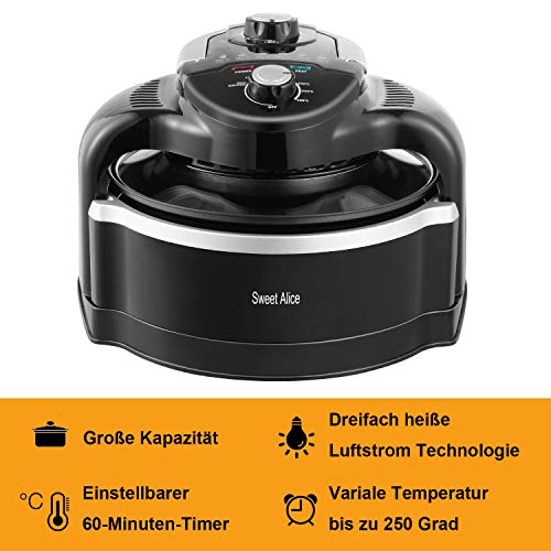 RsvpD - Friggitrice ad aria calda, Airfryer, friggitrice con convezione alogena e lampada a infrarossi, capacità variabile, olio/senza olio, 7 l, 1000 W, 4 kg