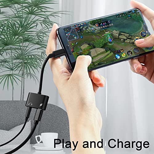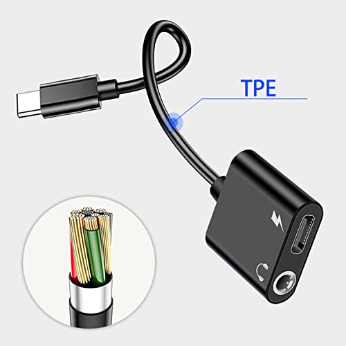 Rtinle Adattatore per Cuffie e Ricarica da USB C a 3,5 mm, Jack Audio 2 in1 da USB C a Aux, ompatibile con Xiaomi Huawei Samsung OnePlus,Nero