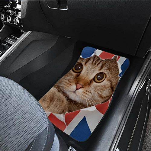 Rtosd 4 Pezzi Tappetini per Auto con Moquette Simpatico Gatto Divertente con Bandiera Tappetini per Moquette sul Davanti