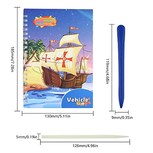 Scratch Art Book multifunzione a doppia faccia, la parte anteriore è carta da bozza con una superficie di rivestimento nera. Basta usare una penna touch in plastica per raschiare lo strato nero per rivelare il bellissimo motivo. Il retro è carta da disegno e i bambini possono riempire il colore con i pastelli.