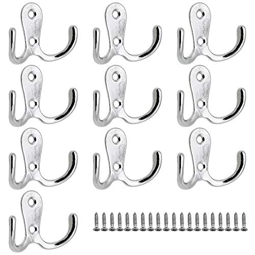 RtottiM 10 Pezzi Gancio Appendiabiti in Lega di Zinco Argento Ganci Appendi per Accappatoio a Doppia Retrò Gancio con Viti Doppio Appendiabiti per Bagno Camera da Letto Porta