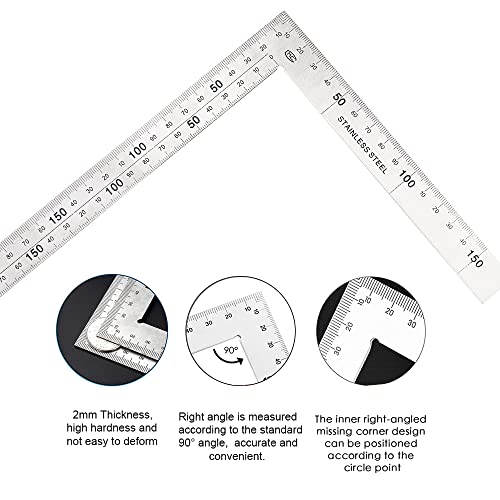 Il righello in metallo è lungo 150 mm, lunghezza 300 mm, larghezza 20 mm. L'angolo retto è misurato come un angolo standard di 90 gradi, quindi non devi preoccuparti dell'errore dell'angolo.