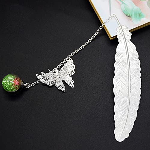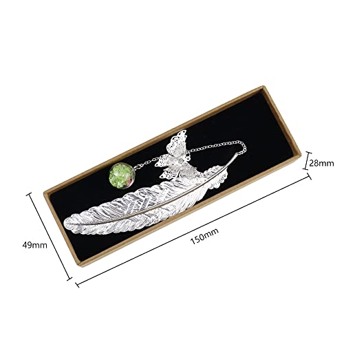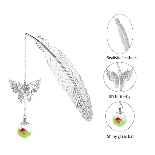 Segnalibri di piume d'argento può essere un regalo meraviglioso per i vostri amici. La piuma lucida con farfalla tridimensionale e realistica e la sfera di vetro offrono un'esperienza di lettura unica e meravigliosa.