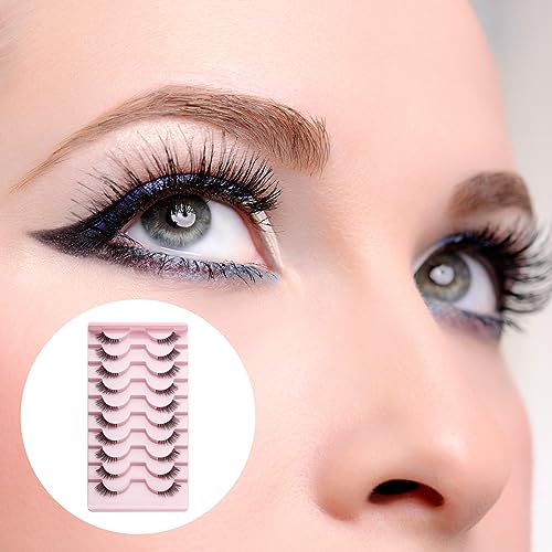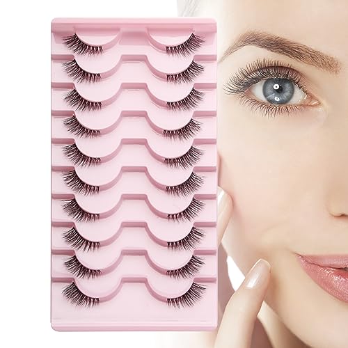 RTRTGS 10 Paia Mezze Ciglia Finte Naturali Fake Lashes,Natural Cat Eye Lashes,3D Half Lashes Sottili Banda occhio di gatto Fatto a Mano False Eyelashes Riutilizzabile Mink Lashes