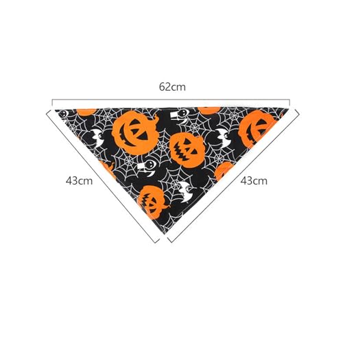 Dimensioni sciarpa: decorazione halloween bandana cane, Questo è un triangolo, la lunghezza di ciascun lato è di circa 65 * 42 * 42 cm / 25,6 * 16,5 * 16,5 pollici, adatto per la maggior parte dei cani di taglia media e grande. Si prega di misurare attentamente la circonferenza del collo del vostro animale domestico e lasciare spazio sufficiente per fare i nodi.