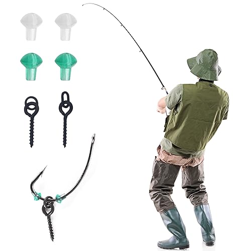 RTRTGS 40 Pezzi Gancio Ferma Perline con Gambo in Gomma con 20 Pezzi Viti Esche da Pesca, Gancio Ferma Carpe per la Pesca