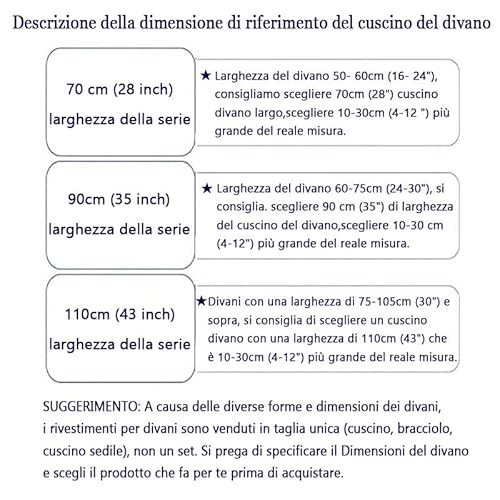【Come acquistare】 Le nostre fodere per divani da soggiorno sono vendute separatamente in diverse dimensioni. (Cuscino dello schienale, bracciolo, cuscino del sedile), non un set completo, si prega di misurare con precisione le dimensioni del divano prima dell'acquisto e scegliere il prodotto che fa per voi.