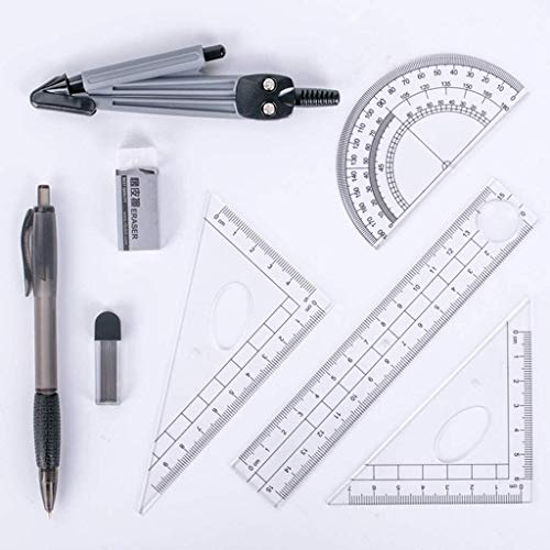 RTUTUR 8pcs / Set Portable Kit Geometria di precisione Goniometro Compasso, Righello, Matita Essentials Math Studio Strumento