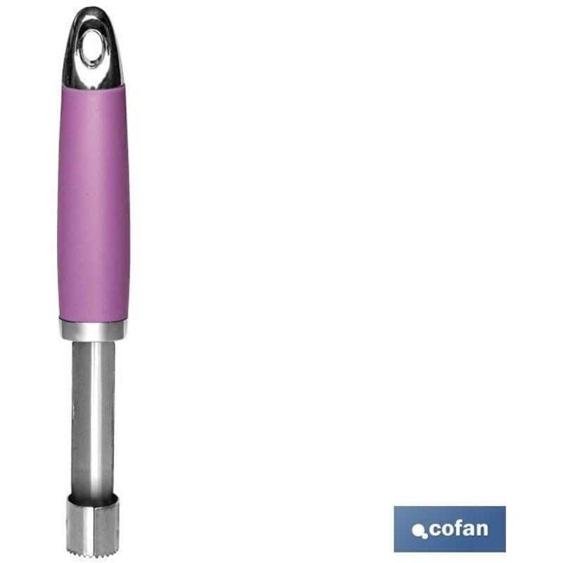 Pela-torsolo di mela modello Sena. È realizzato in acciaio inossidabile 430 con finitura TPR cromata e ha una maniglia ergonomica in ABS arancione. L'utensile misura 21 cm. Adatto all'uso alimentare e lavabile in lavastoviglie. Caratteristiche te