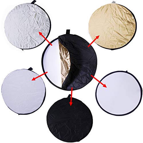 Ruberg 5in1 riflettore pieghevole Riflettore di luce tondo portatile da 30 cm in oro bianco argento bianco nero e trasparente per studio, diffusore foto