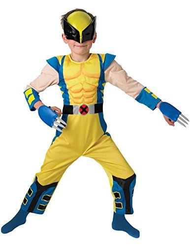 Rubie's Marvel Bambino Wolverine Costume Deluxe, Stampato costume con petto imbottito e maschera e artigli, Grandi 7-8 anni, 128 cm di altezza