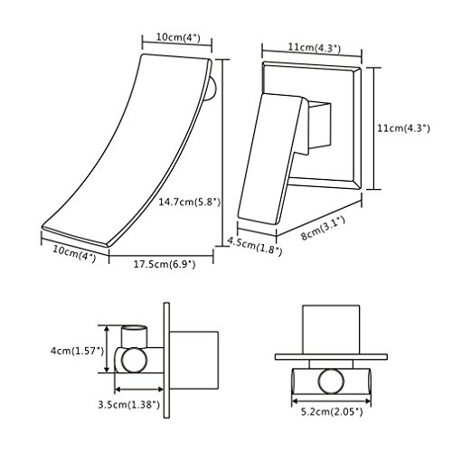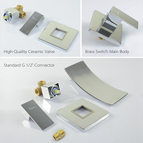 Rubinetti Cascata Parete,Miscelatore Vasca da Bagno con Diffuso Cascata,Rubinetto Lavabo Muro in Ottone Cromato,PHASAT JH088