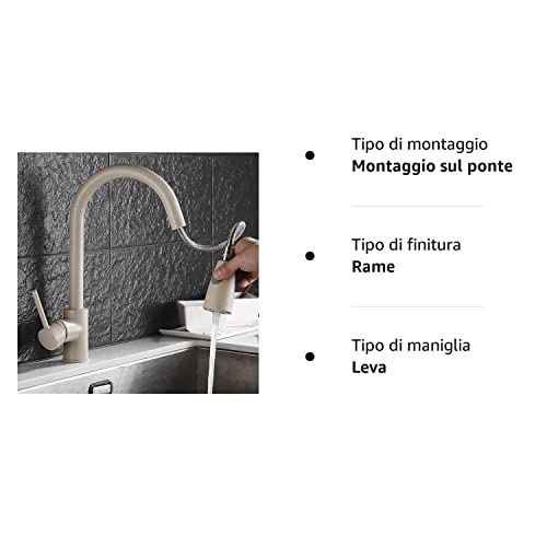 ★ Doppia funzione: Spruzzatore con beccuccio estraibile, acqua delicata e delicata, risparmio idrico e silenzioso, due tipi di modalità acqua (flusso / spruzzo). Variabile con un pulsante e facile da pulire.