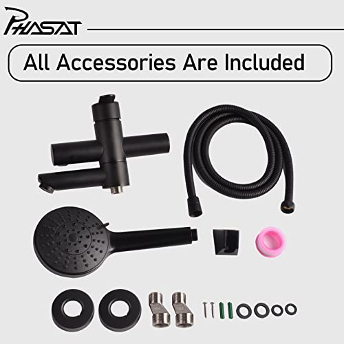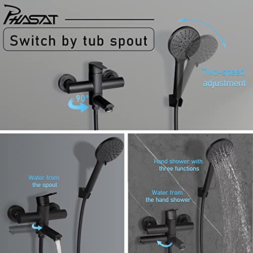 Rubinetti per vasca con doccetta Rubinetto per vasca a parete Rubinetto nero per vasca da bagno Bocca girevole a 90 ° PHASAT PTBB04...
