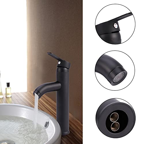 【ALTA QUALITÀ】 Il rubinetto del lavandino del bagno nero è realizzato in ceramica e ottone massiccio, previene le perdite e richiede poca manutenzione per garantire qualità e longevità. Connettore universale G1/2" addensato, durevole, resistente alle alte temperature, resistente alla corrosione.