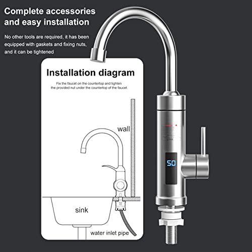Rubinetto per Acqua Calda e Fredda, Rubinetto Elettrico per Scaldabagno Istantaneo in Acciaio Inossidabile, Termometro a LED, Rubinetto da Cucina, Accessori per Rubinetti Rotanti a 360 °(Silver-A)