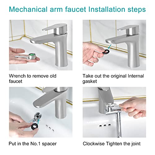 【Compatibile con quasi tutti i rubinetti 】 Il regolatore girevole del getto del rubinetto è compatibile con la maggior parte dei rubinetti del bagno/cucina/lavanderia: rubinetto con filettatura esterna da 20 mm, 22 mm e rubinetto con filettatura interna da 24 mm. Viene fornito con 2 rondelle e un rotolo di nastro adesivo per migliorare l'impermeabilità. Include anche una chiave ad un'estremità per rimuovere l'aeratore del rubinetto originale e stringere il nuovo estensore.